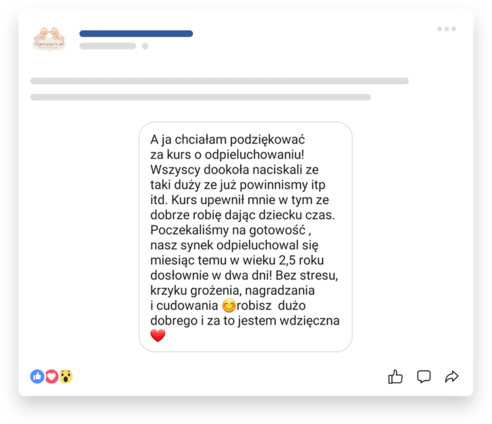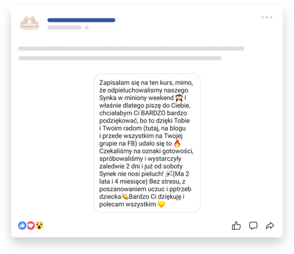 Tak, jeden z modułów kursu dotyczy sytuacji, w których coś w odpieluchowaniu poszło “nie tak” i potencjalnych przyczyn, a także sposobów rozwiązania trudności.